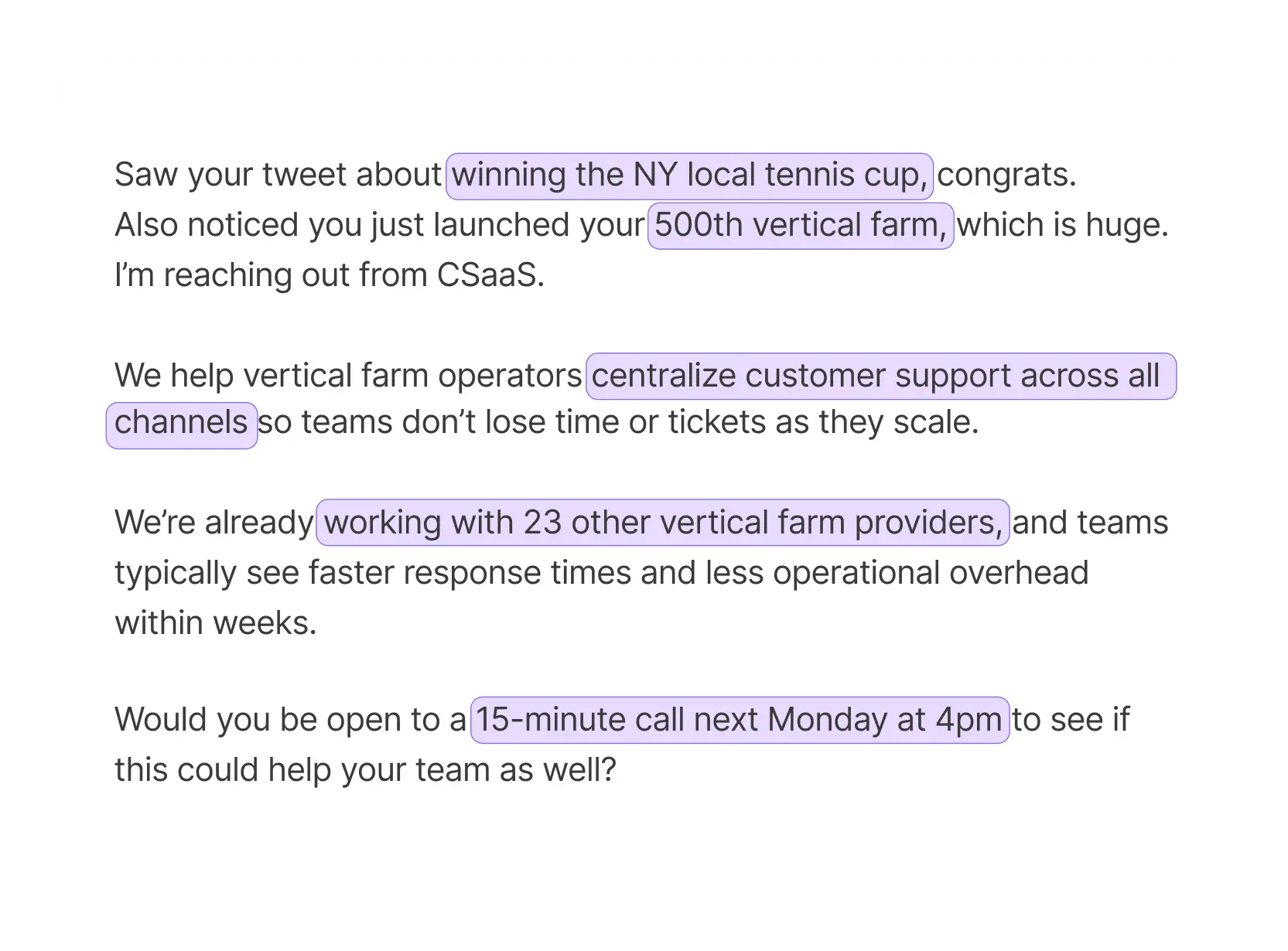 She's 10x more productive than a human, at one-tenth of the cost. She finds leads, researches them, and writes hundreds of hyper-personalized emails. All in a matter of seconds.